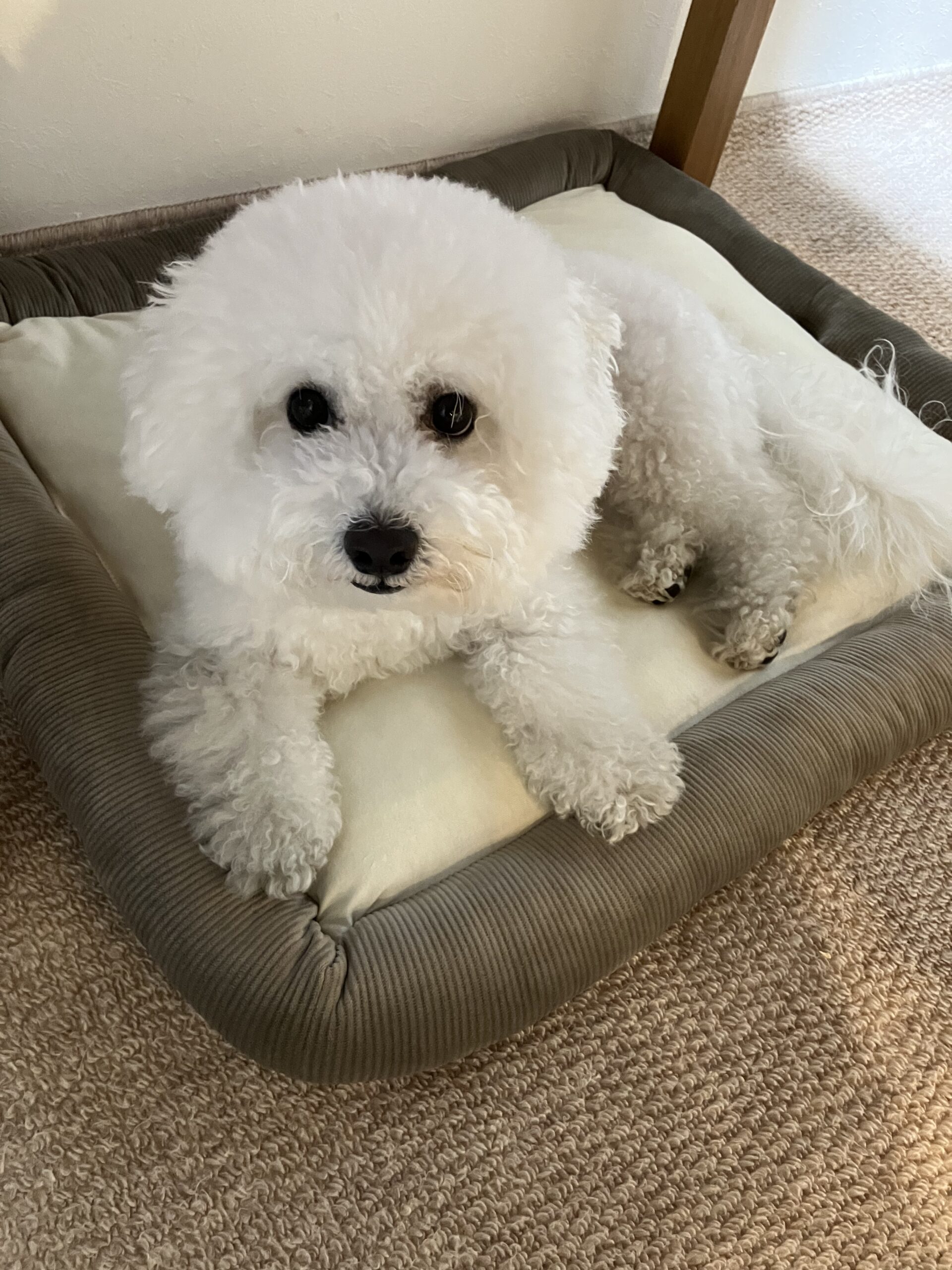 「おもち」は、ビションフリーゼの男の子。岐阜県出身です。ブリーダーさんのもとから、我が家にやってきました。